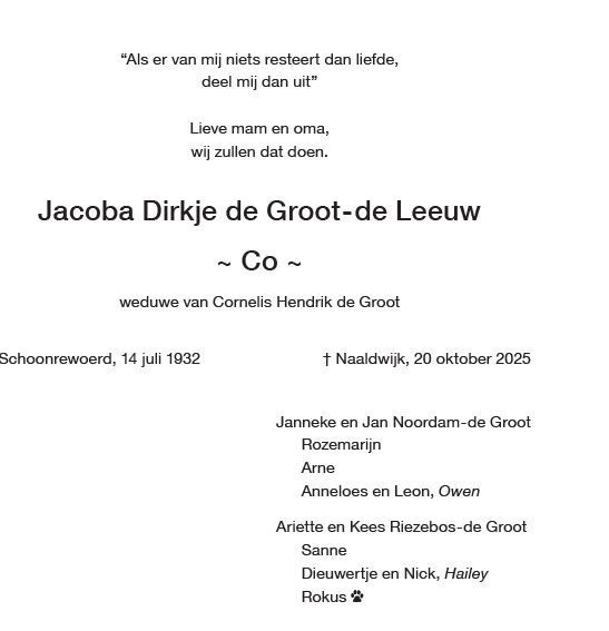 zaterdag 25 oktober 2025 om 10.30 uurDankdienst Co de Groot-de LeeuwVoorganger(s): Hans Paauwe Beamer: Paul Mosterd |