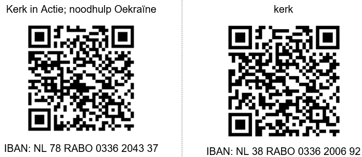 Collecte: 1. Kerk in Actie; noodhulp Oekraine, 2. kerkrentmeesters
